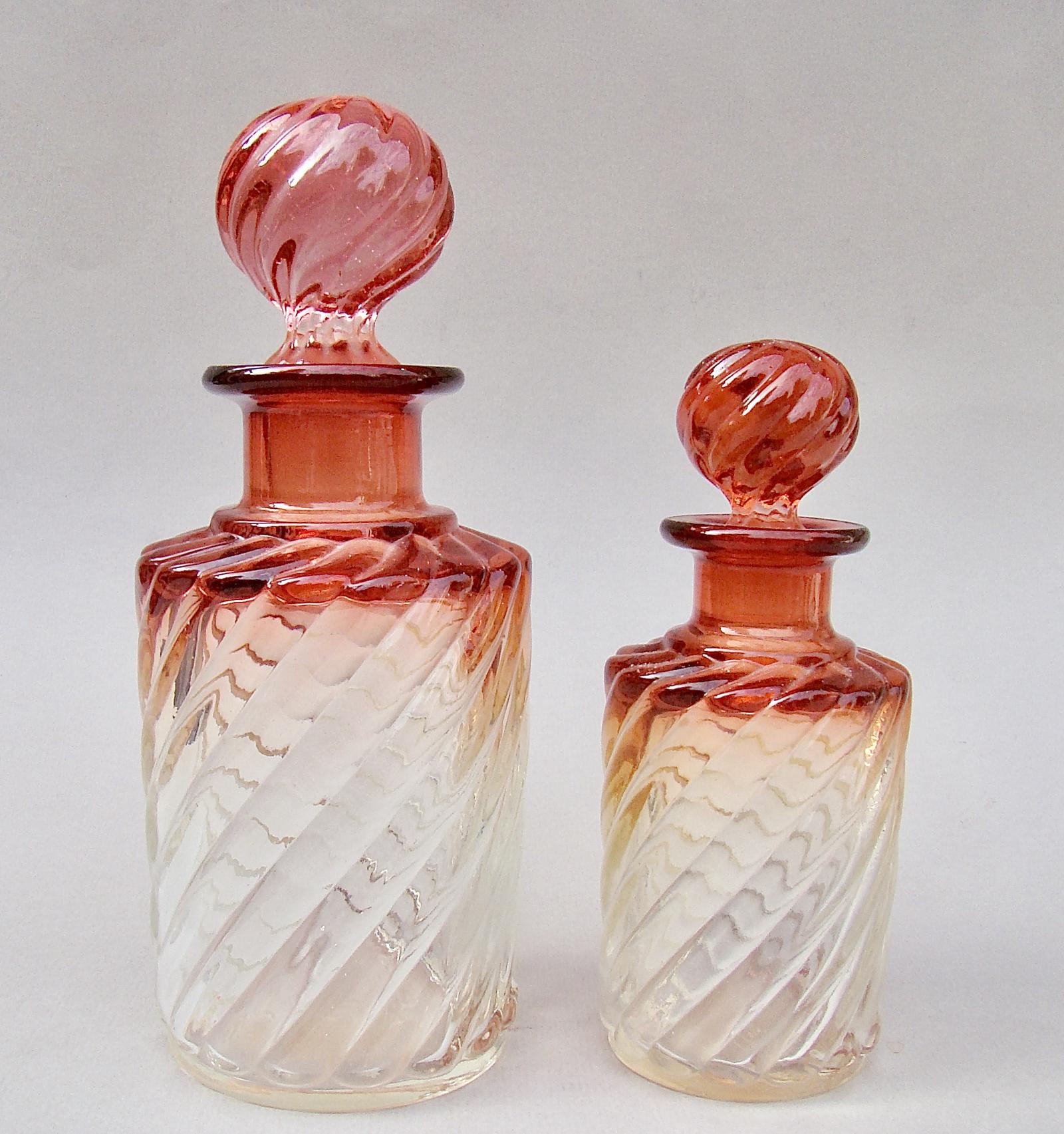 Pair of Graduated French Baccarat Bamboo Pattern Scent Bottles c.1890