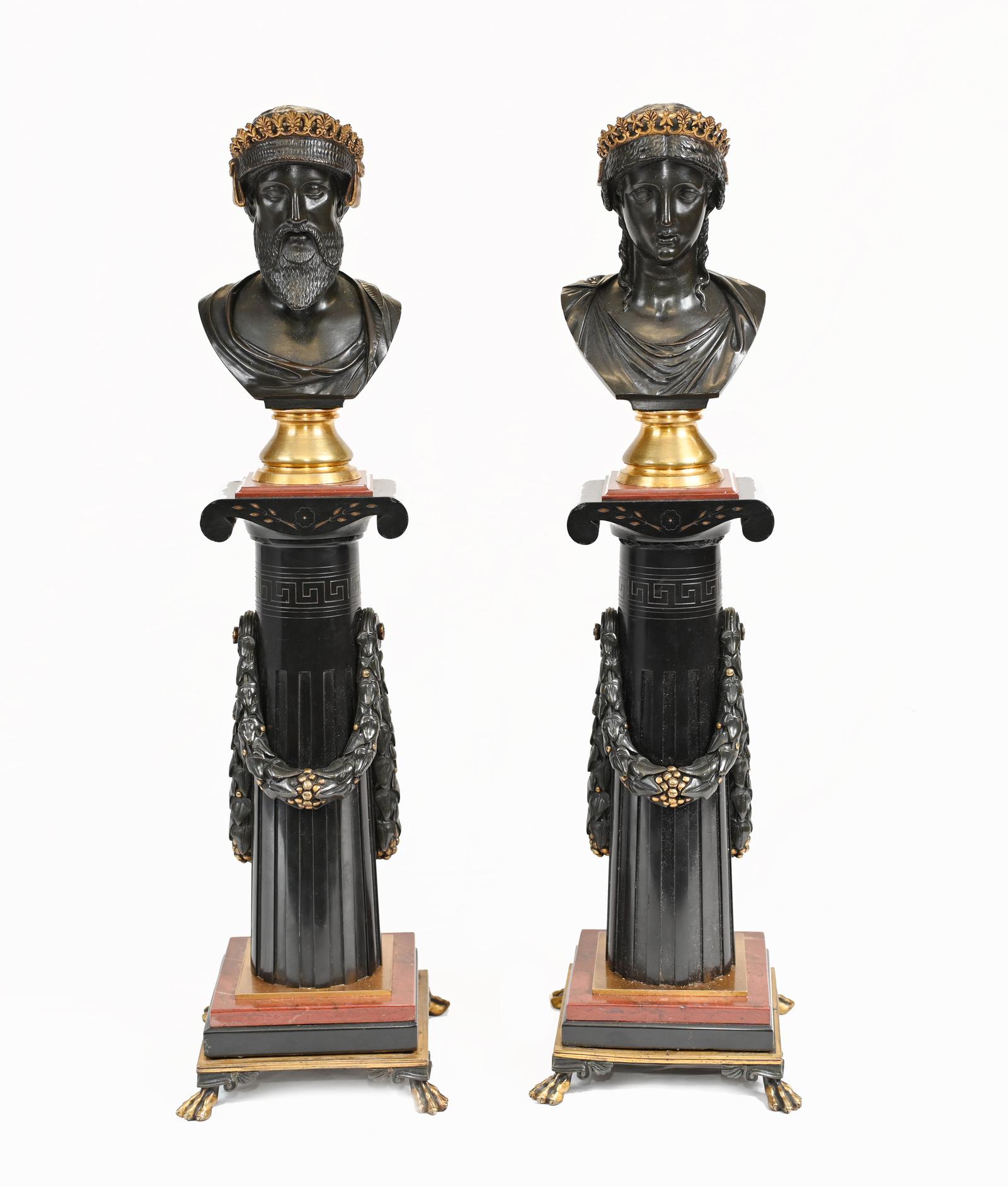 Pair of Grand Tour Busts on Stands Bronze Jupiter Juno 1820