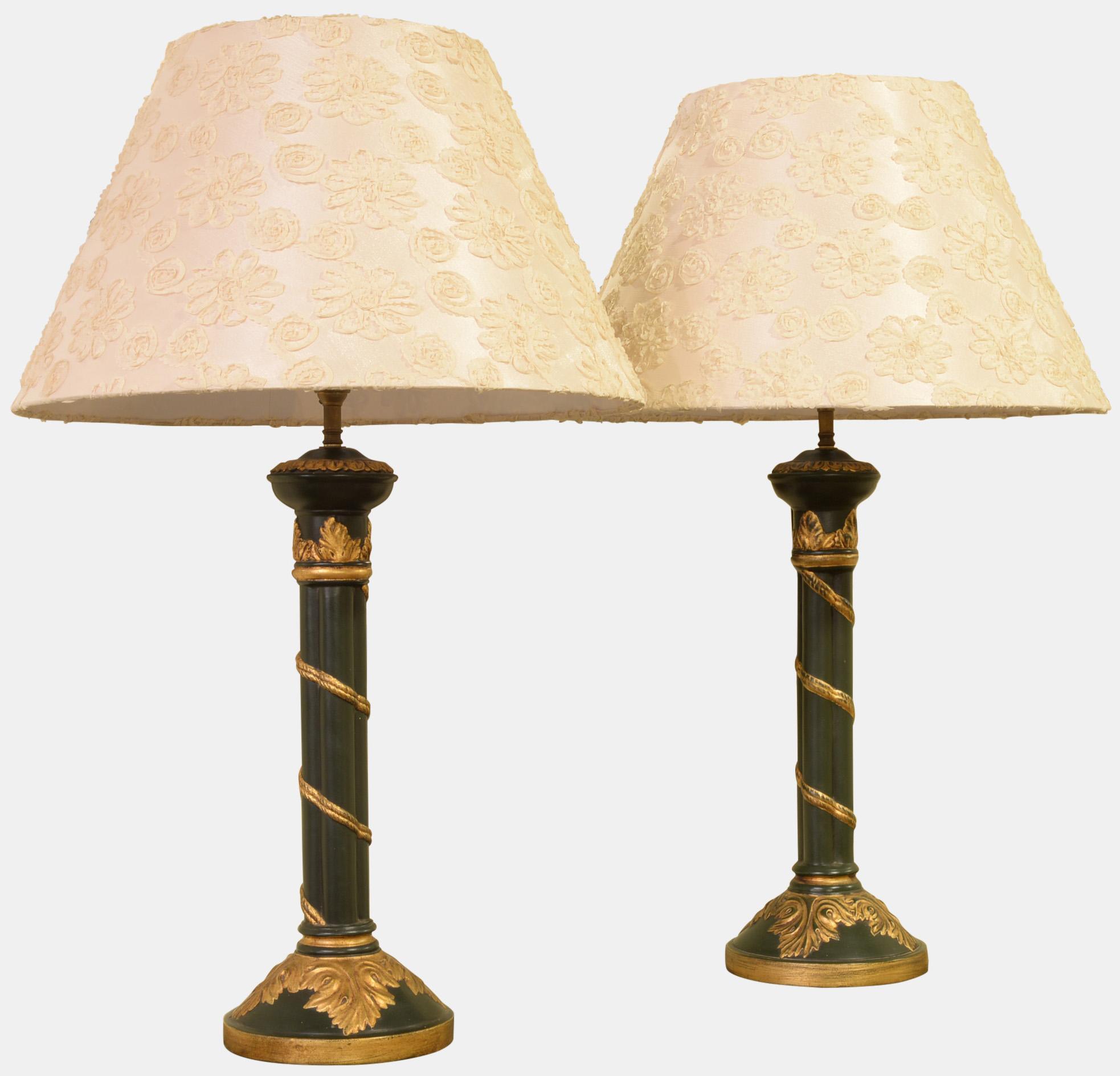 Pair of Green Ceramic Column Lamps (1 of 1)