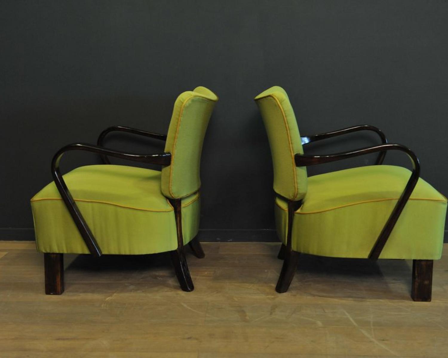 Pair of Green Cocktail Armchairs Reupholstered and Refurbished