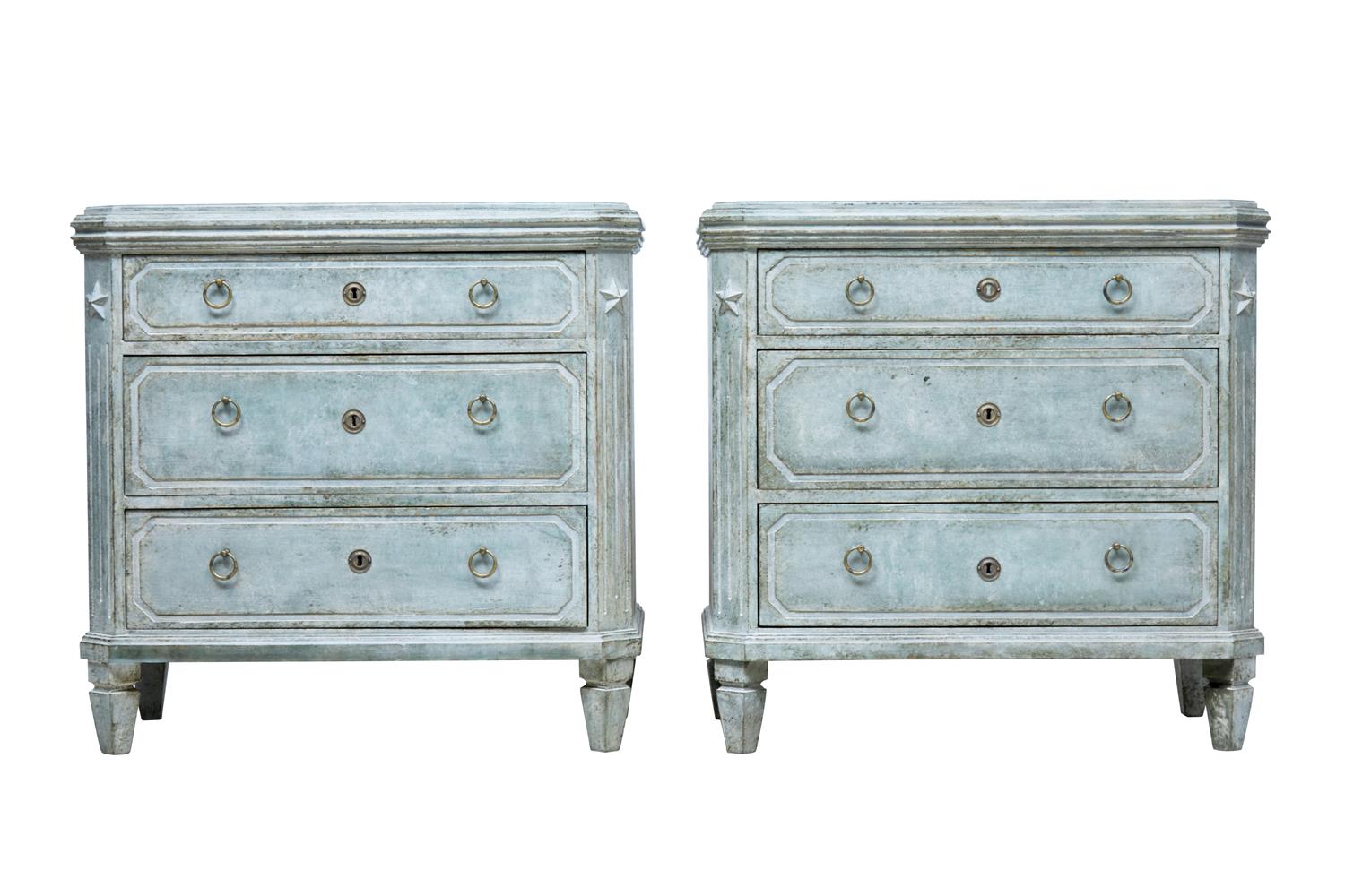 Pair of Green Painted 19th Century Swedish Chest of Drawers