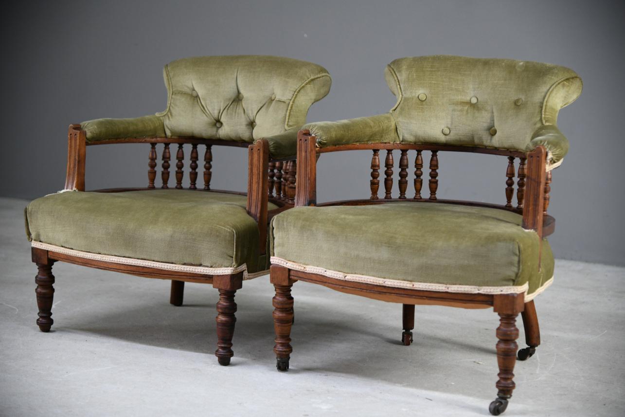 Pair of Green Upholstered Tub Chairs