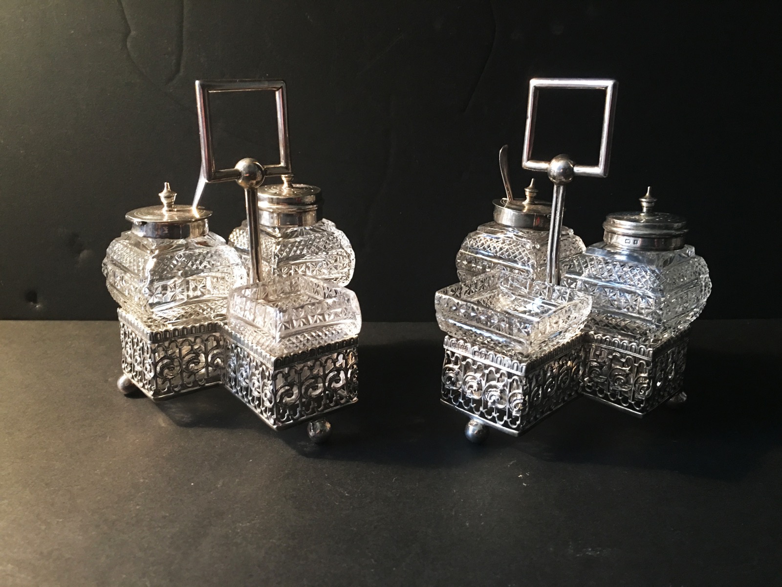 Pair of Hallmarked Silver Cruet Sets & Condiments