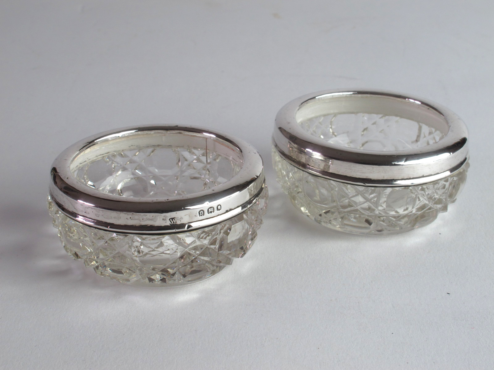 Pair of Hallmarked Silver & Cut Crystal Salts