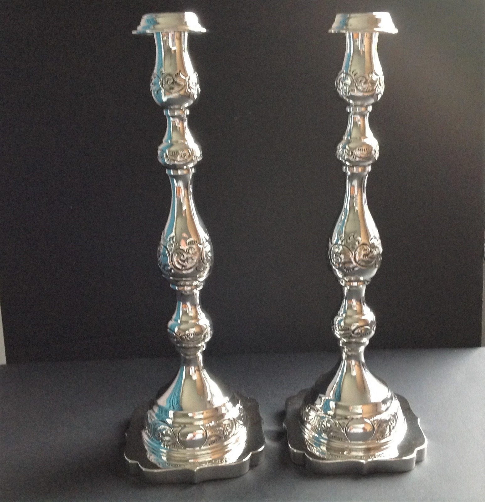 Pair of Hallmarked Silver Shabbat / Sabbath Candlesticks - 1935