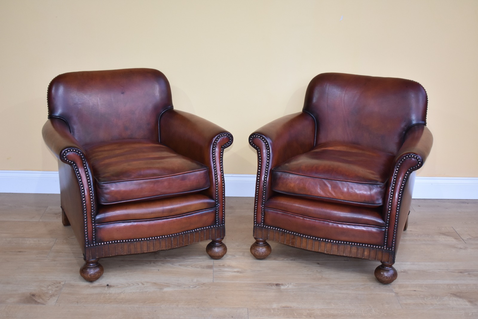 Pair of Hand Dyed Brown Leather Armchairs C.1920