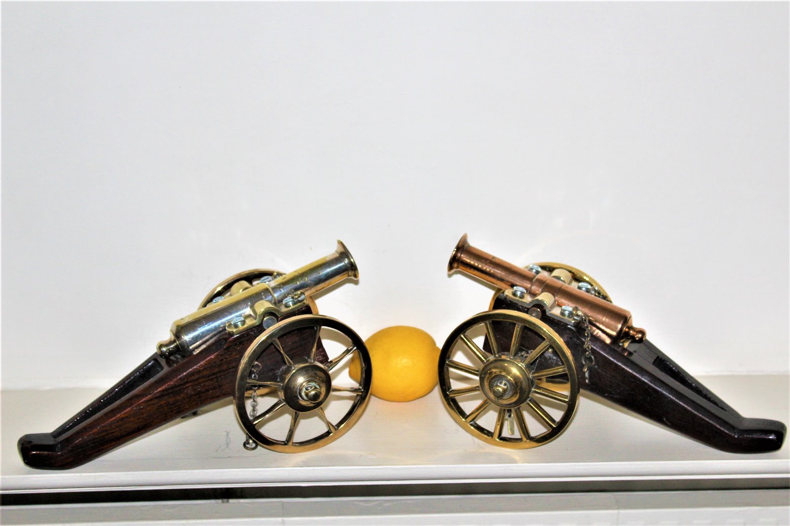 Pair of Hand Made Heavy Polished Bronze Desk Cannons On a Mahogany Undercarriage English c.1880