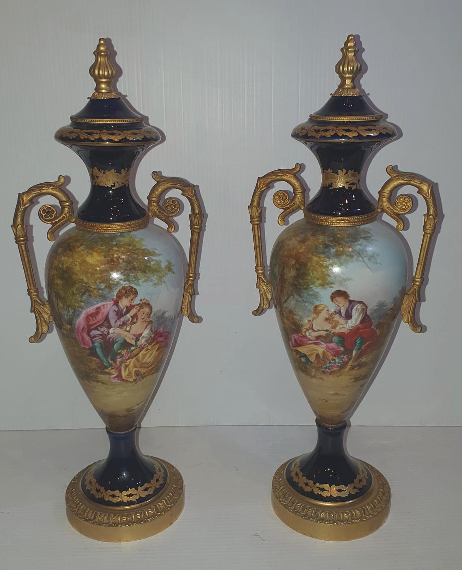 Pair of Hand Painted Early 20th Century French Porcelain Urns