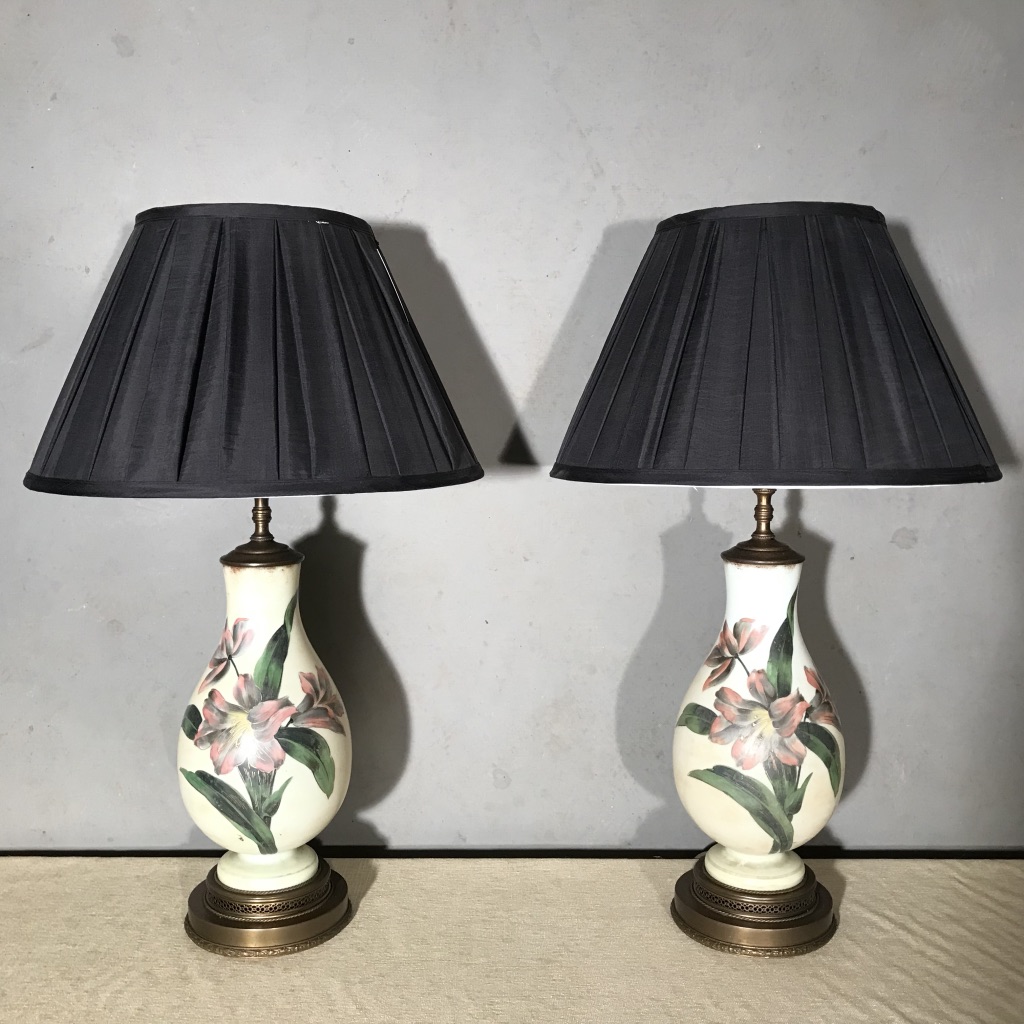 Pair of Hand Painted Glass Table Lamps (1 of 1)