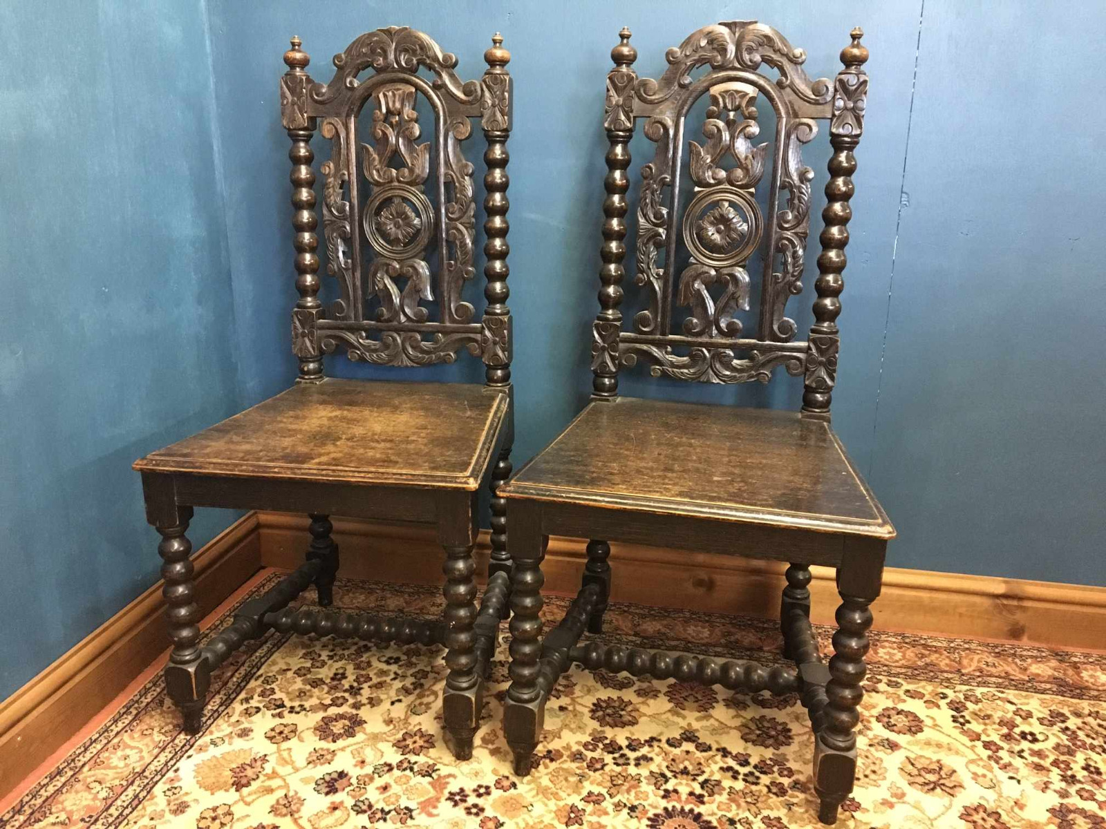 Pair of Heavily Carved Oak Hall Chairs (1 of 1)