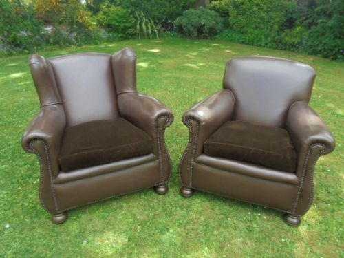 Pair of His & Hers Club Armchairs c.1920