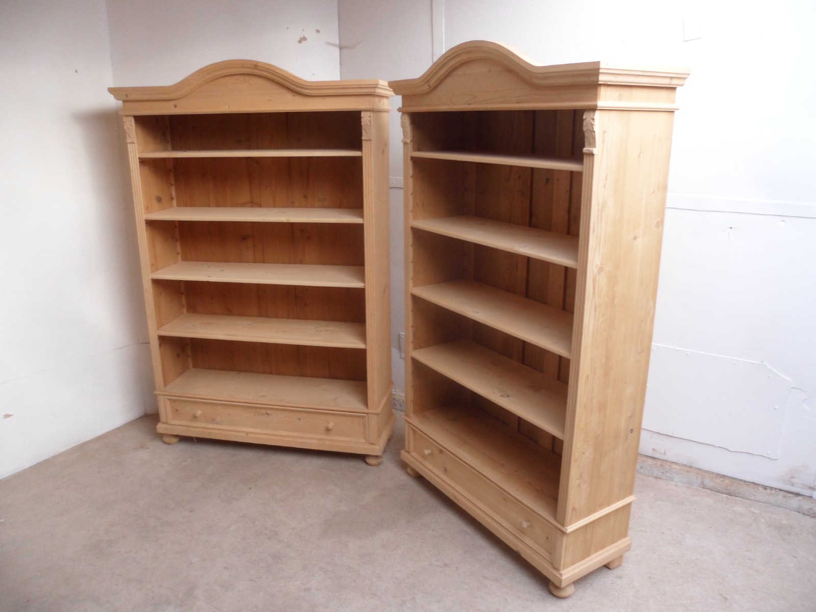Pair of His & Hers Old Pine 1 Drawer Adjustable Bookshelves to wax / paint