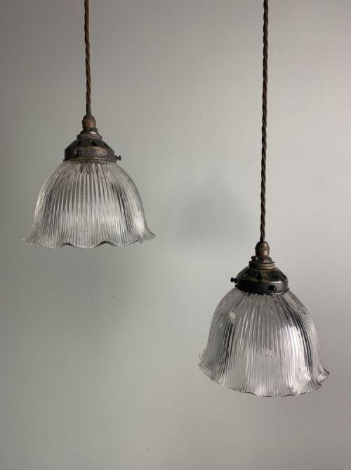 Pair of Holophane Shades Pendant Ceiling Lights, Rewired
