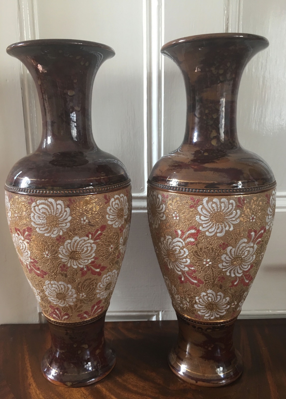 Pair of Huge Doulton Slaters Patent Stoneware Vases