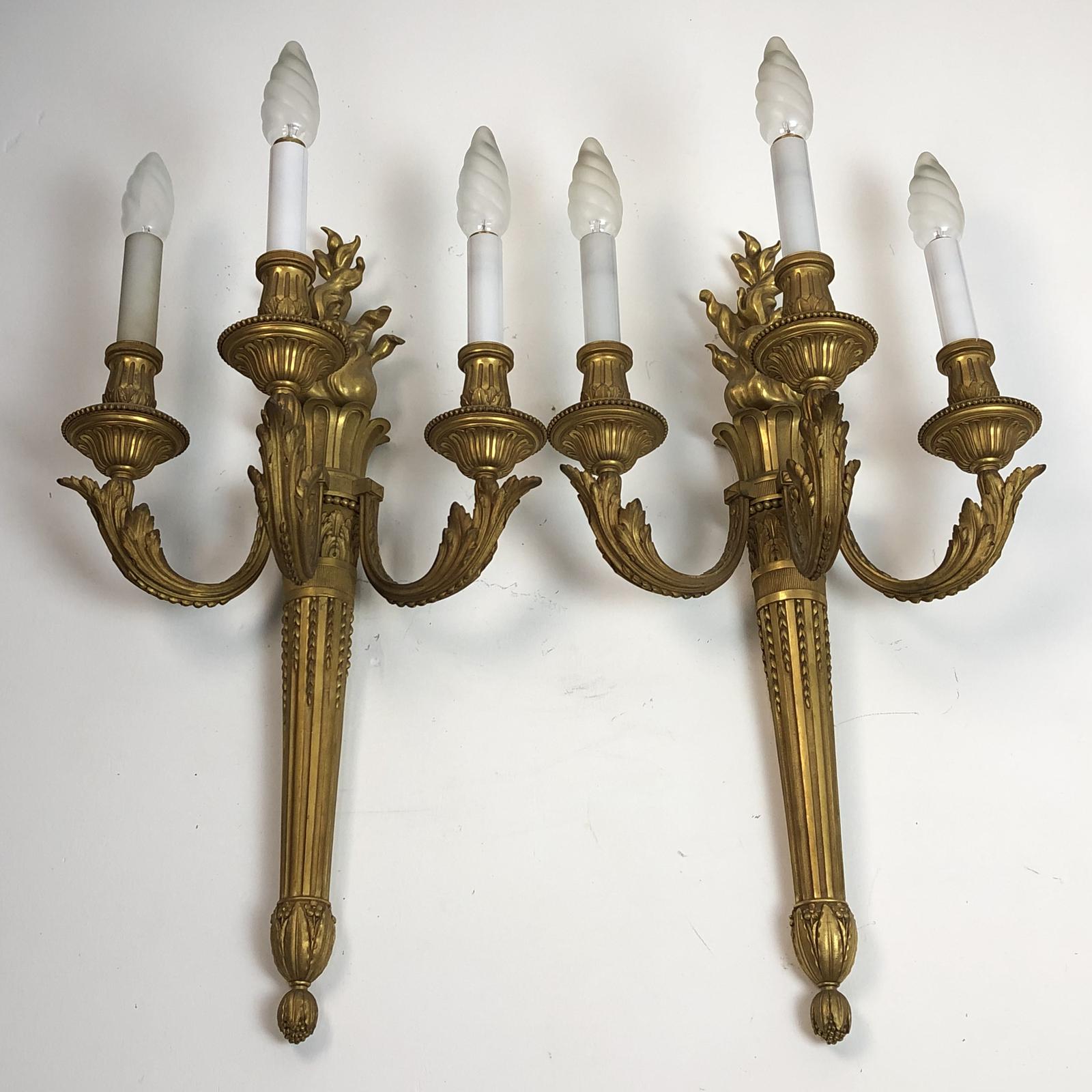 Pair of Huge French Gilded Bronze ‘Flambeau’ Imposing Wall Lights Magnifique