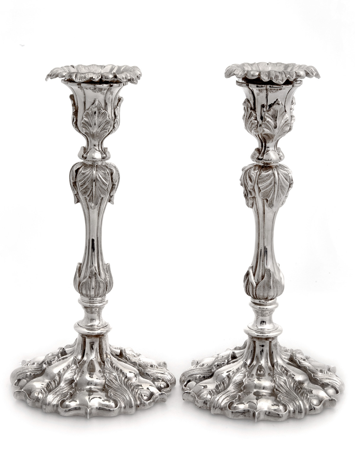 Pair of Impressive Elkington & Co Silver Plated Candlesticks Decorated with Acanthus Leaves
