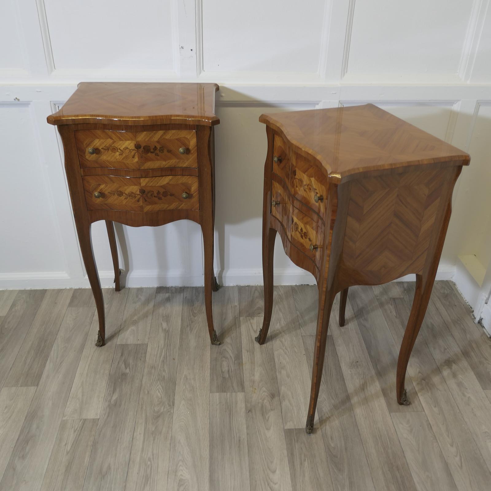 Pair of Inlaid French Serpentine Shaped Bedside Cabinets