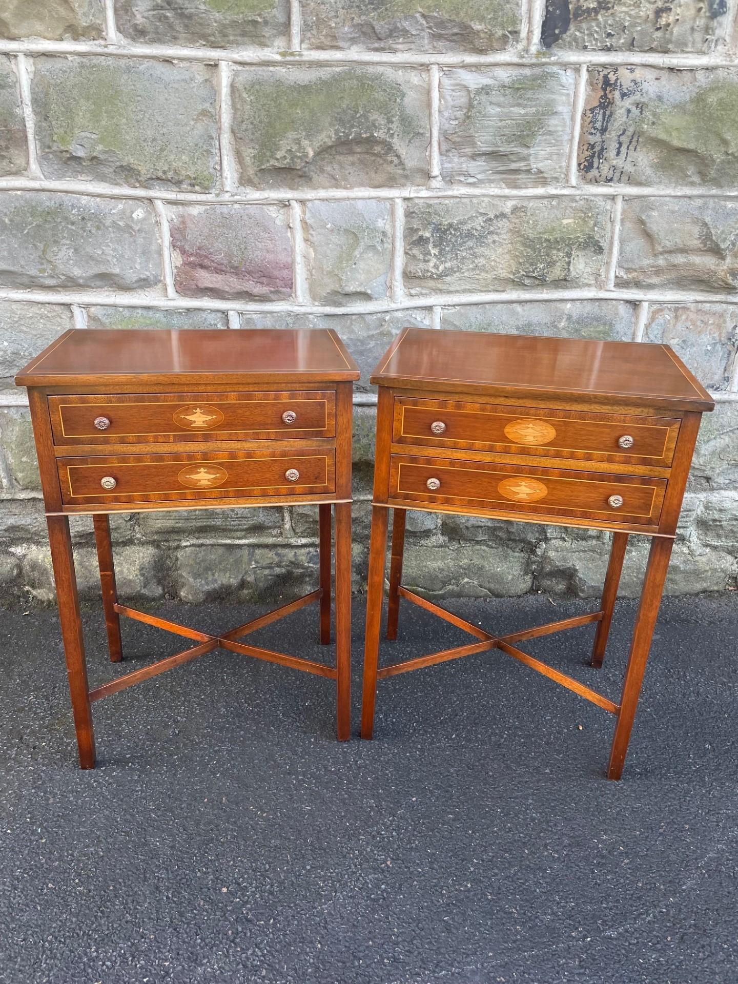 Pair of Inlaid Mahogany 2 Drawer Bedside Tables