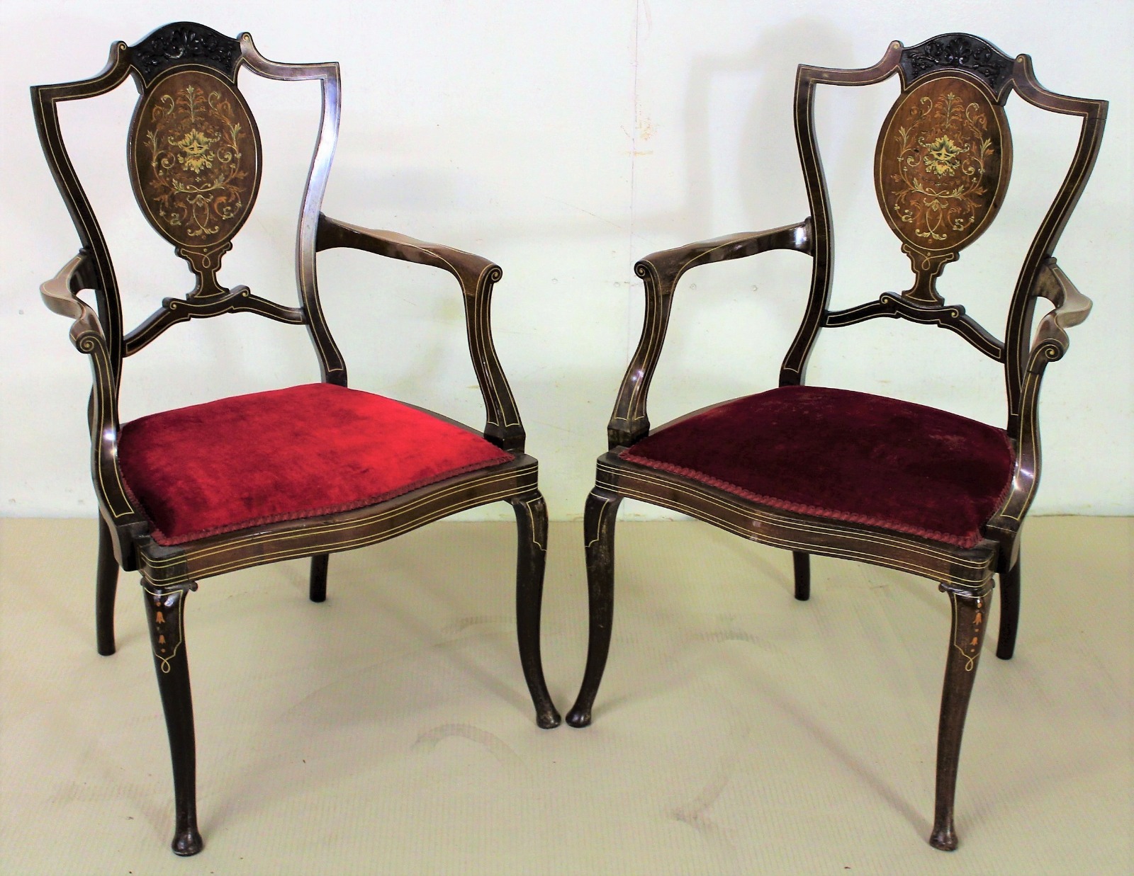 Pair of Inlaid Mahogany Armchairs c.1895 (1 of 1)
