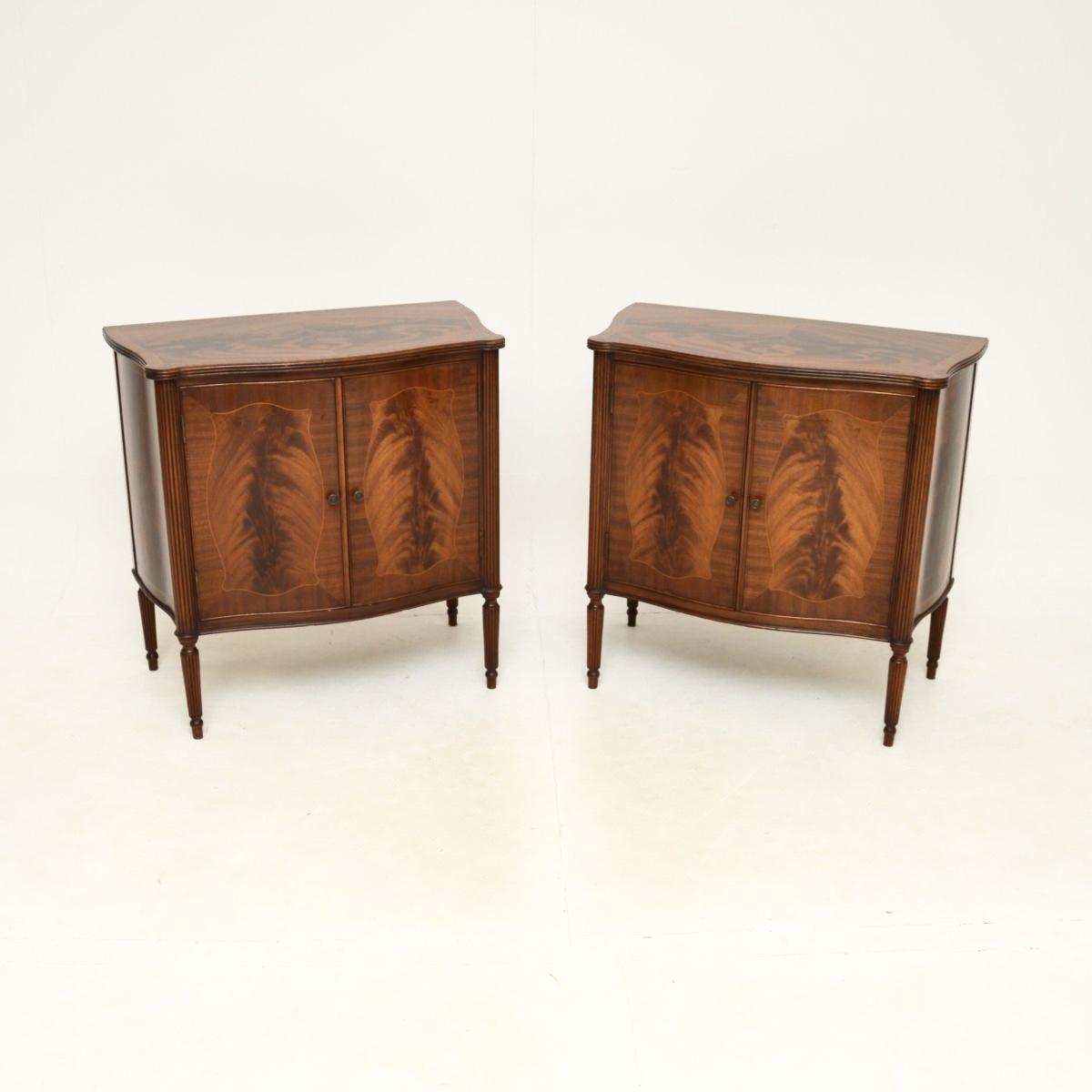 Pair of Inlaid Mahogany Serpentine Cabinets