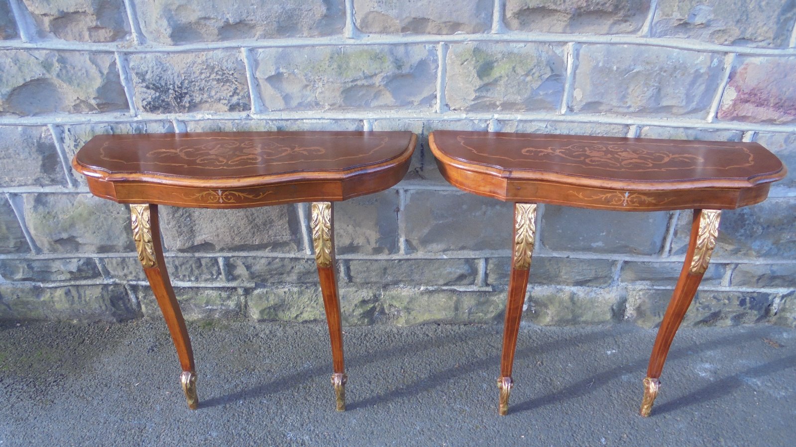 Pair of Inlaid Walnut & Gilded Console Tables c.1900