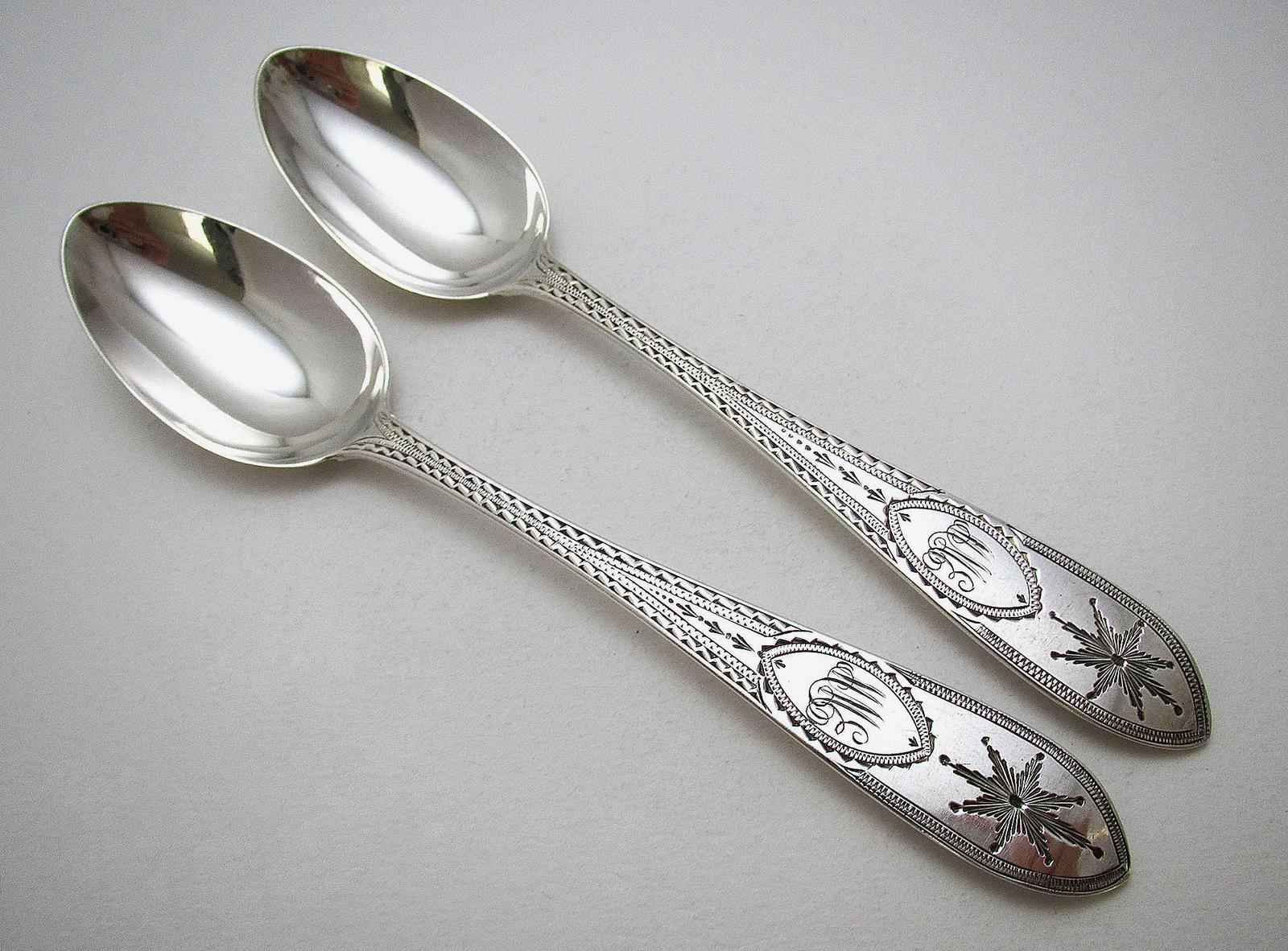 Pair of Irish Antique Solid Sterling Silver Large Tea Spoons Bright-cut Dublin Star (1 of 7)