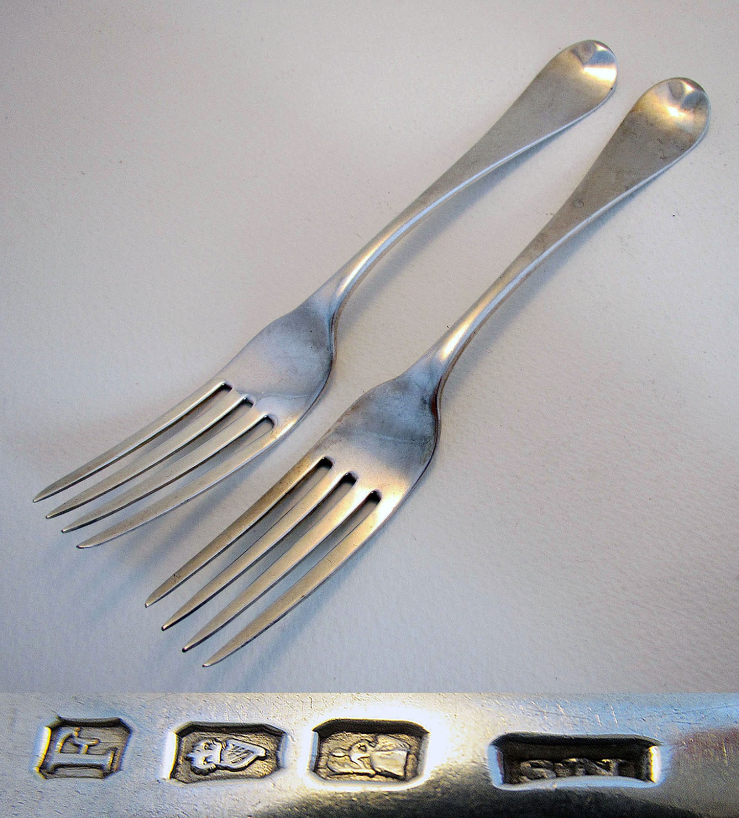 Pair of Irish George III Solid Sterling Silver Forks. Samuel Neville. Dublin Hallmarked 1802