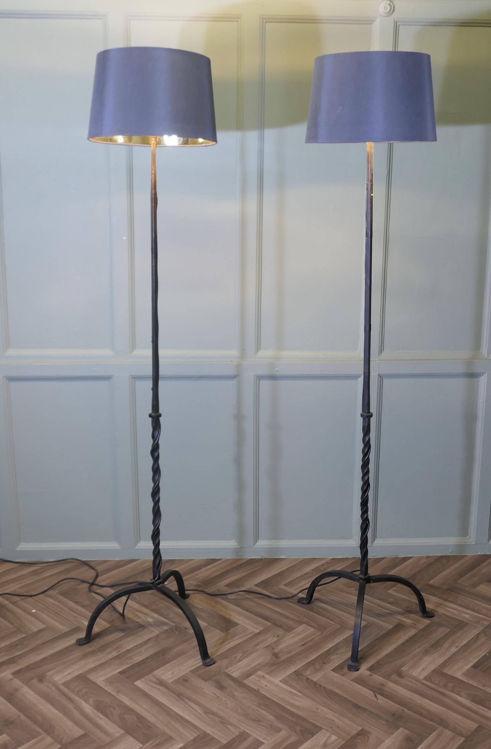 Pair of Iron Floor Lamps, Arts and Crafts Standard Lamps