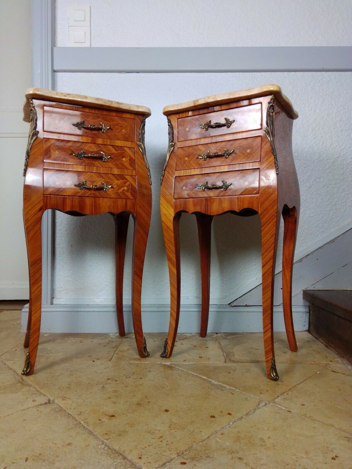 Pair of Italian Bombe Bedside Cabinets, Marquetry Rosewood