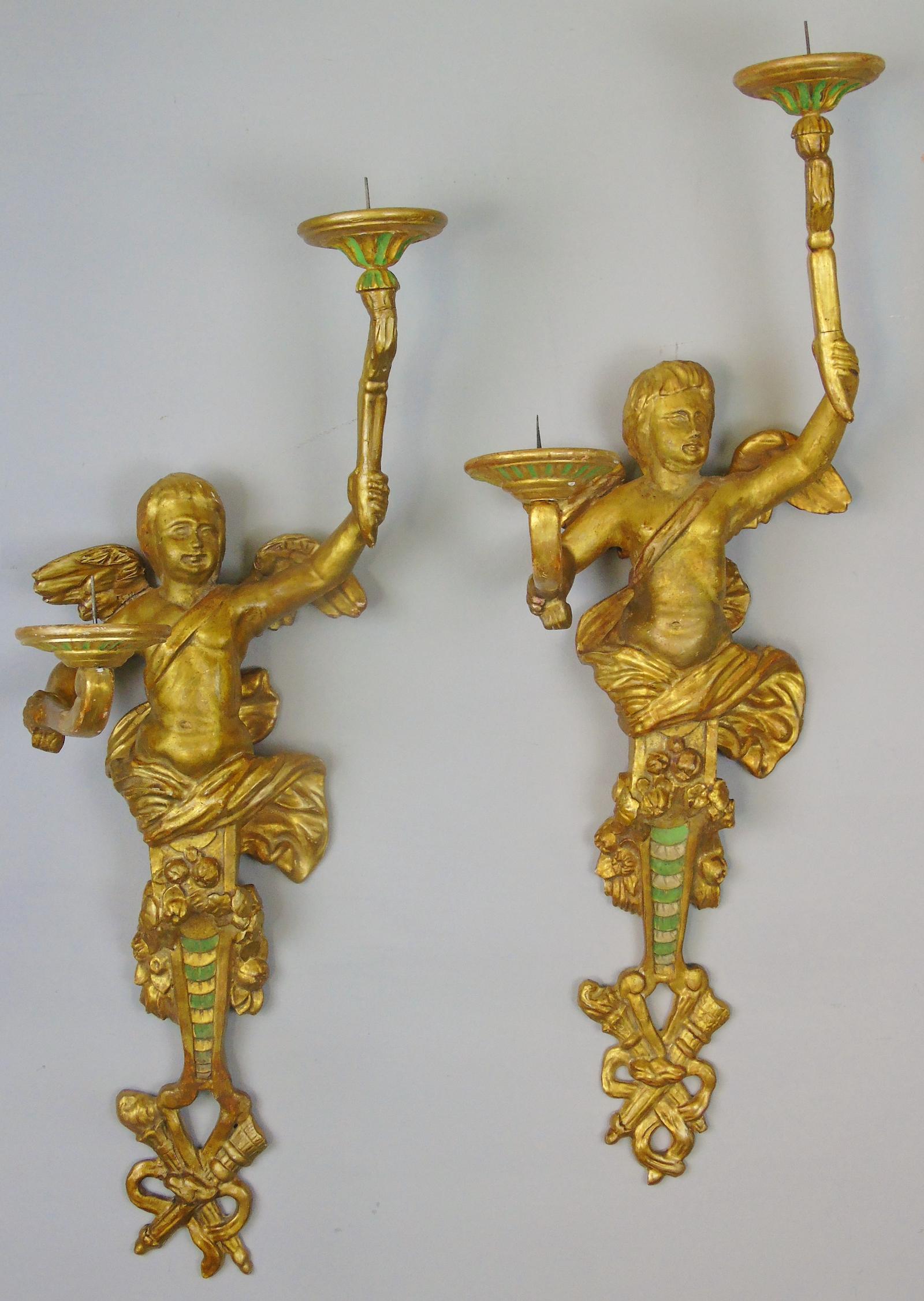 Pair of Italian Carved Giltwood Cherub Wall Candle Sconce (1 of 8)