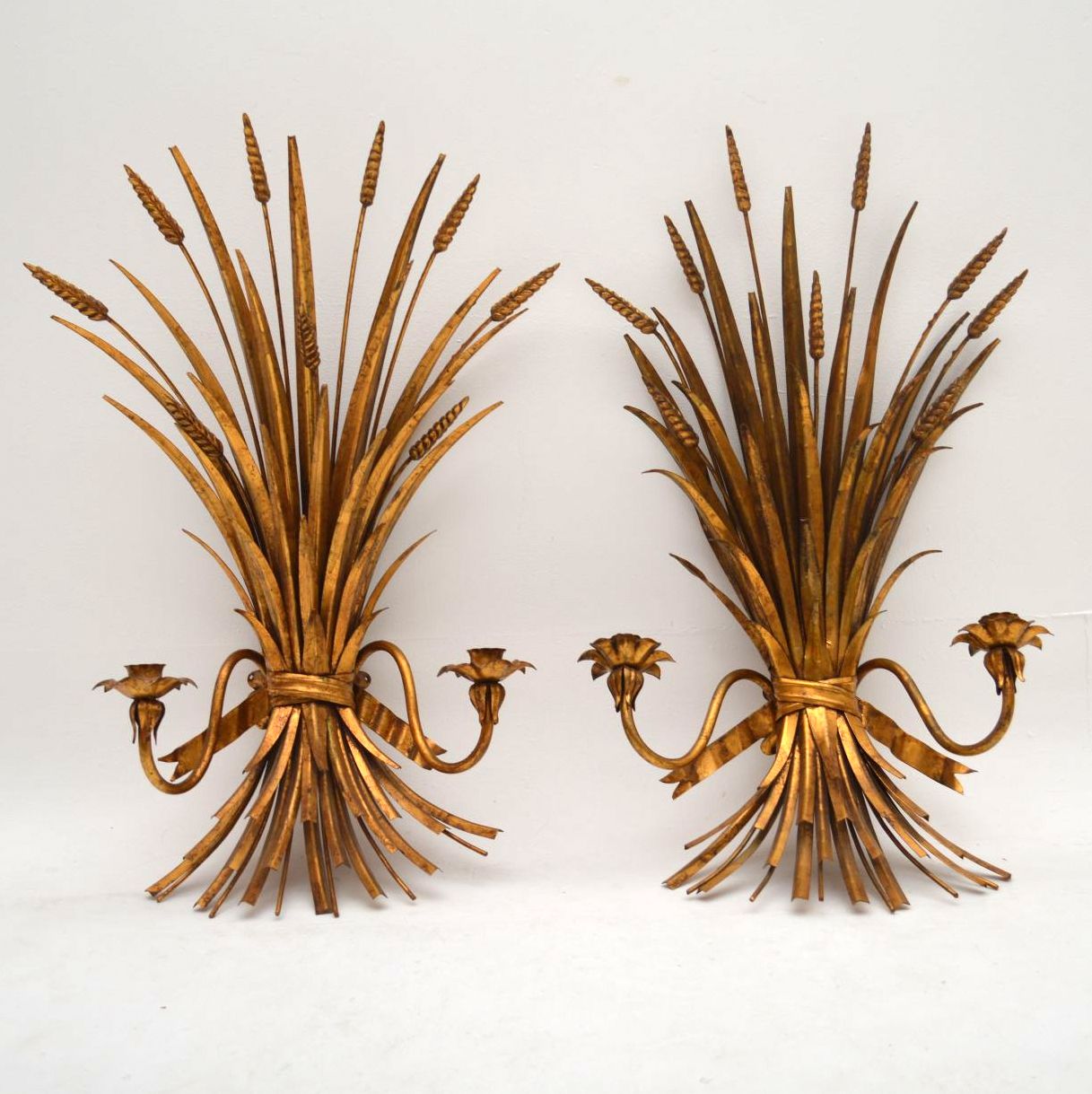 Pair of Italian Gilt Metal Wheat Sheaf Wall Sconces (1 of 1)