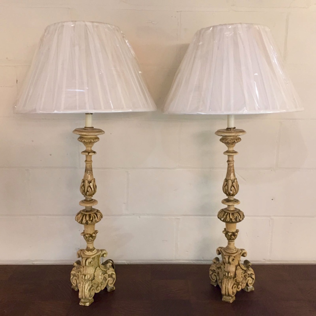 Pair of Italian Plaster Column Lamps c.1900 (1 of 3)