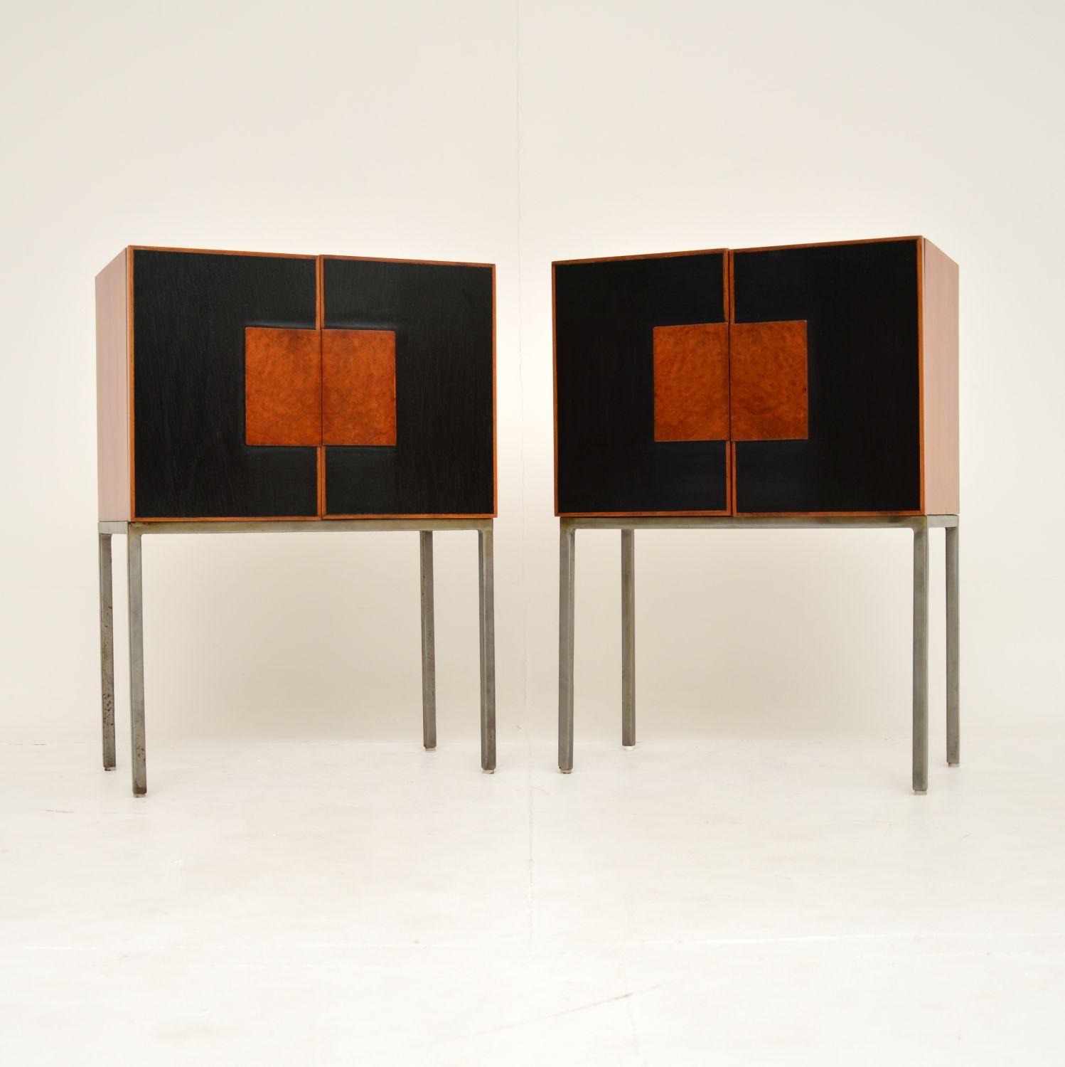 Pair of Italian Vintage Walnut & Birch Side Cabinets
