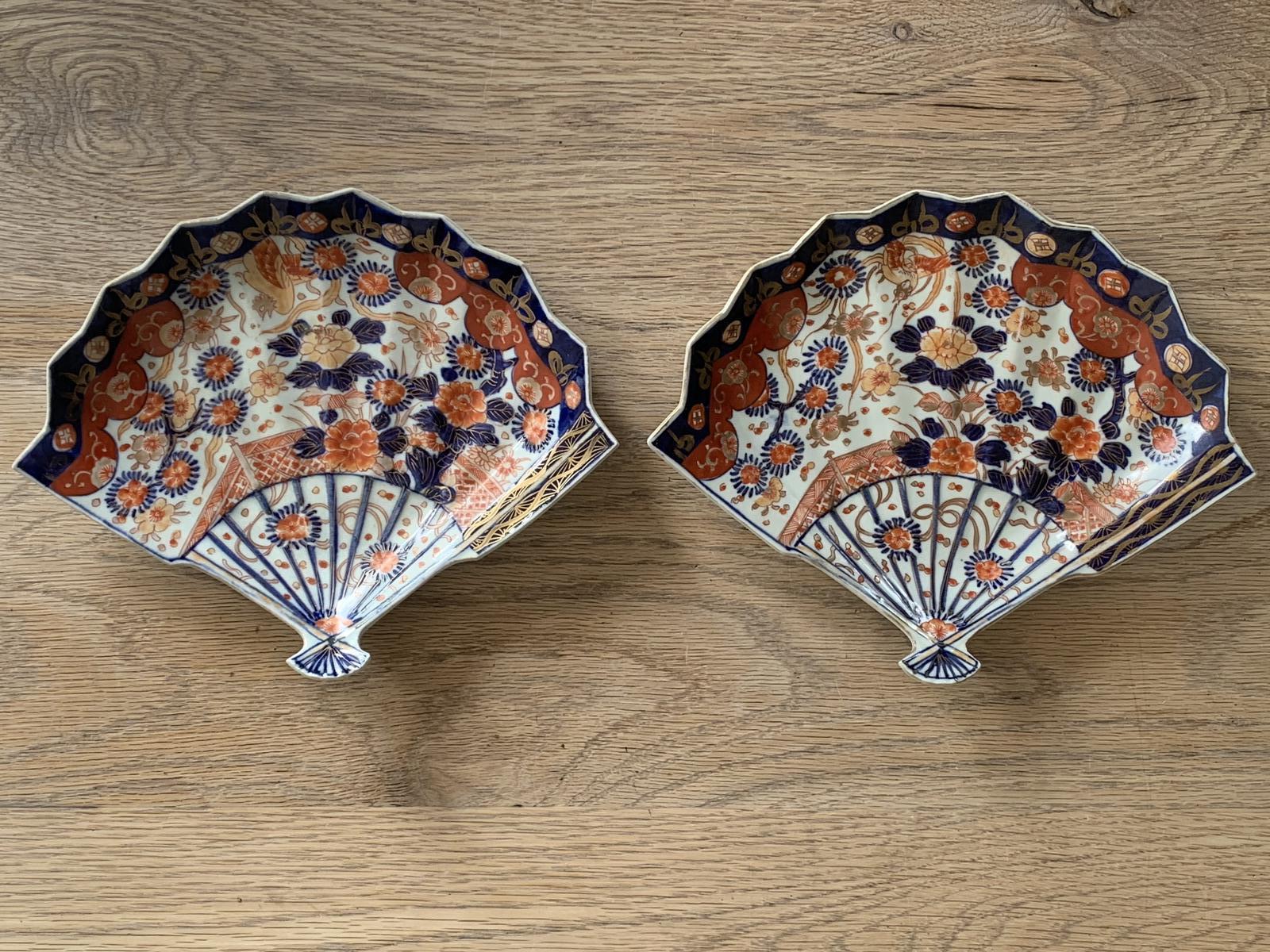 Pair of Japanese Imari Fan Dishes Porcelain Serving Dishes Arita, Meiji Period c.1890