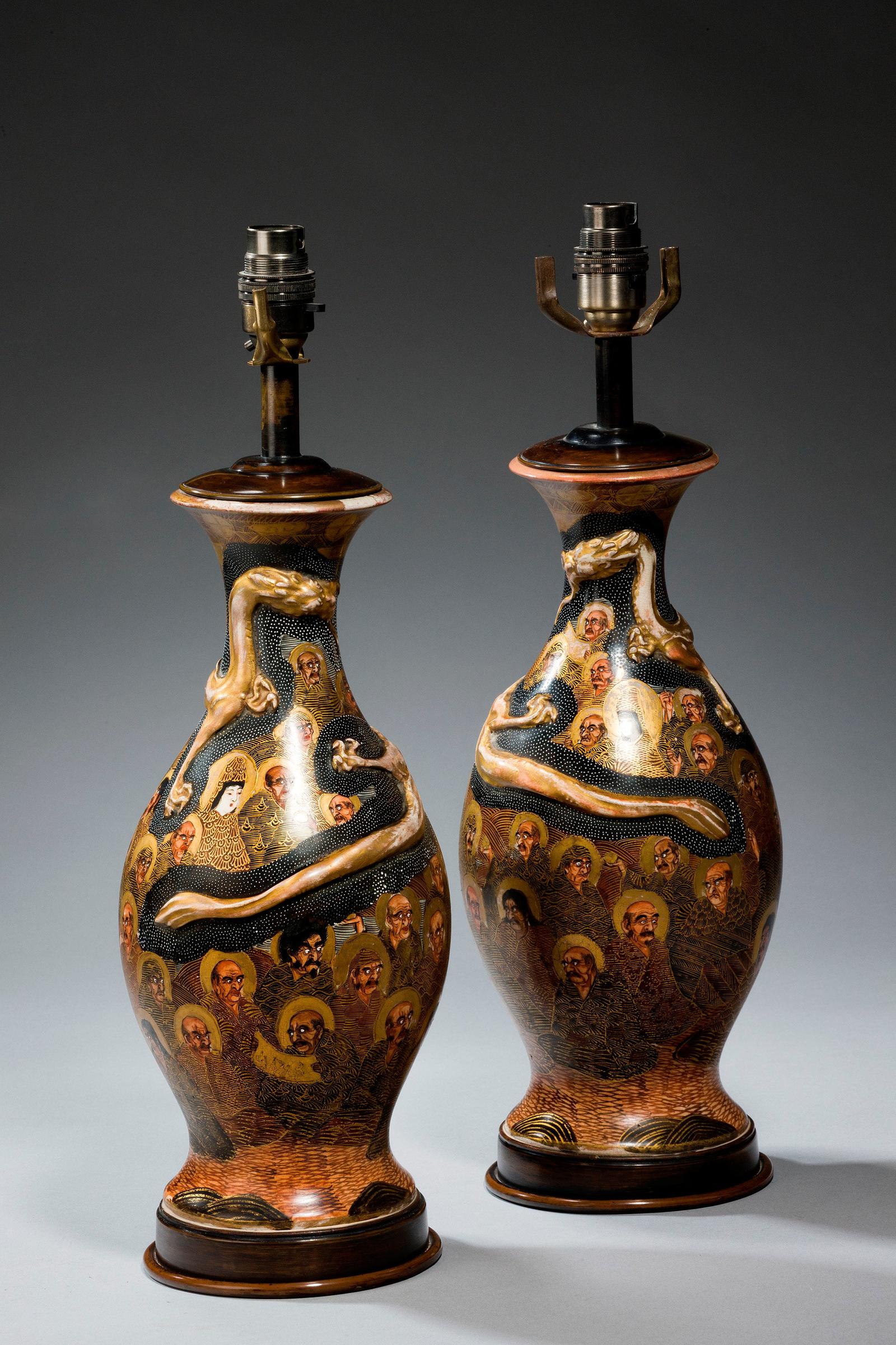 Pair of Japanese Ovoid Vase Lamps