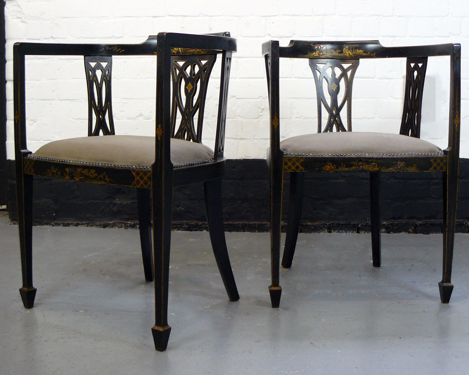 Pair of Japanned Chinoiserie Side Elbow Hall Chairs c.1910