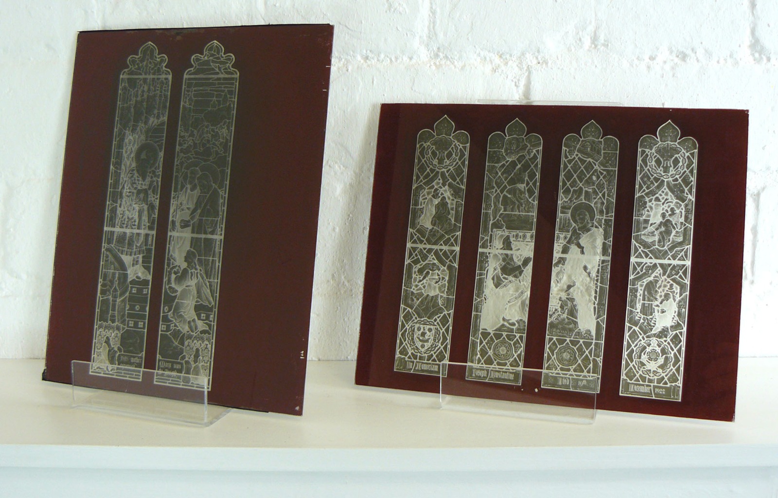 Pair of John Hardman Stained Glass Window Design Glass Slides Pugin c.1920 (1 of 1)