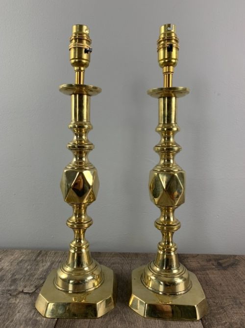 Pair of King of Diamond Brass Table Lamps, Rewired & PAT Tested