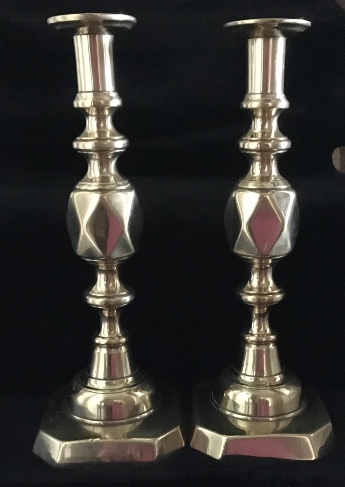 Pair of ‘King of Diamonds’ Brass Candlesticks c.1900