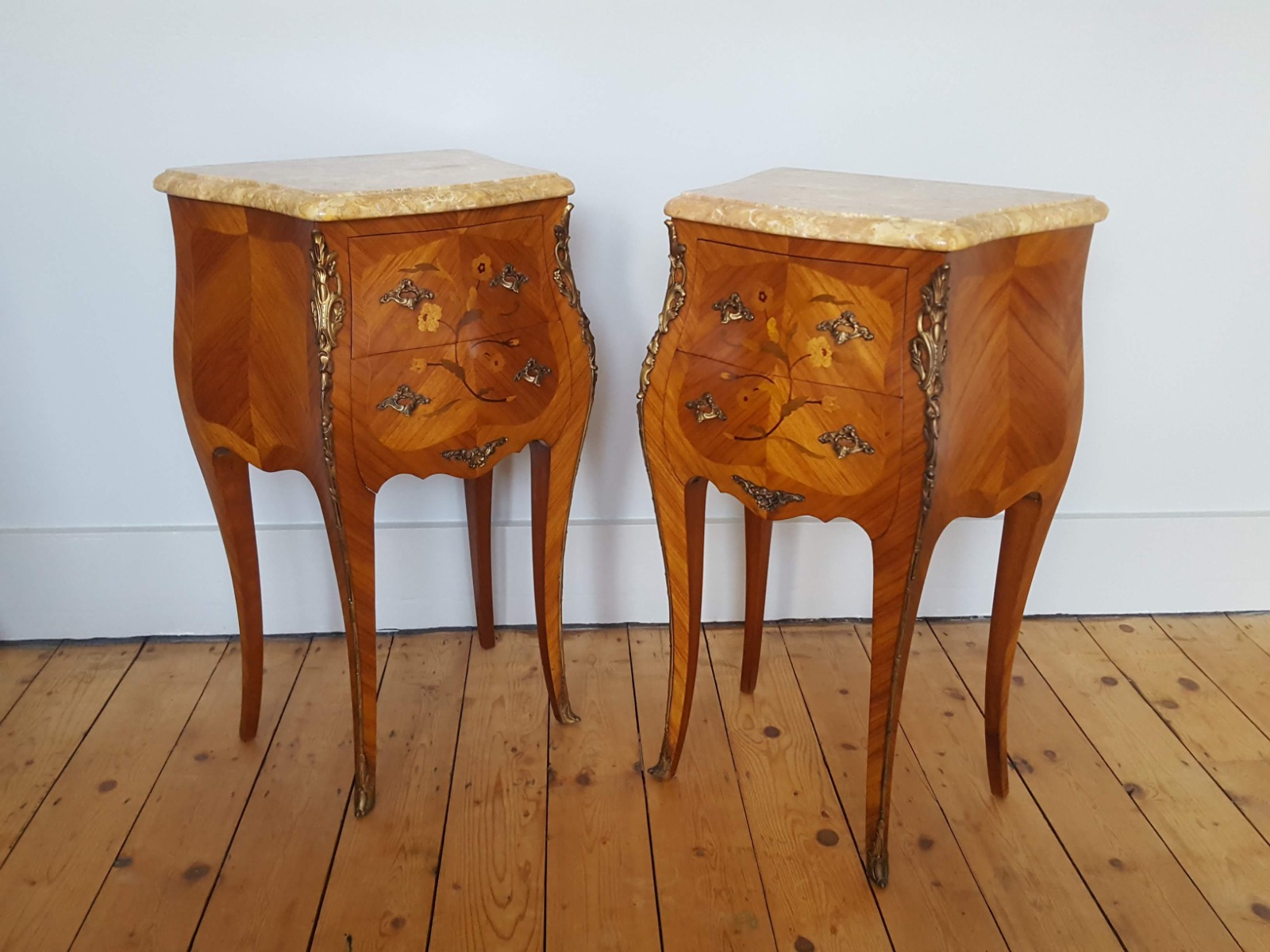 Pair of Kingwood Marquetry Bedside Tables c.1930