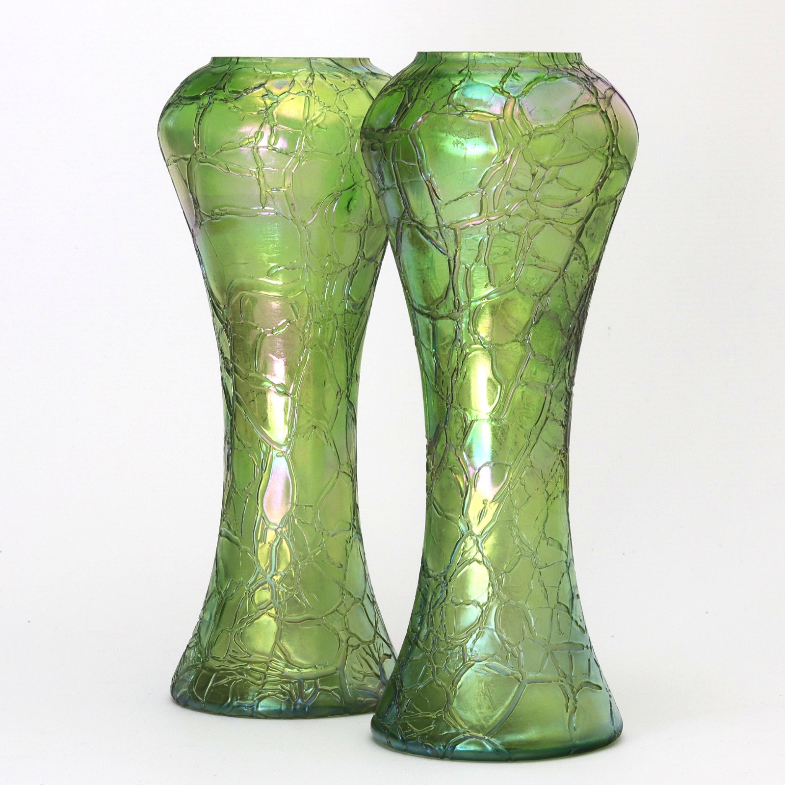 Pair of Kralik Iridescent Crackle Glass Vases C.1900