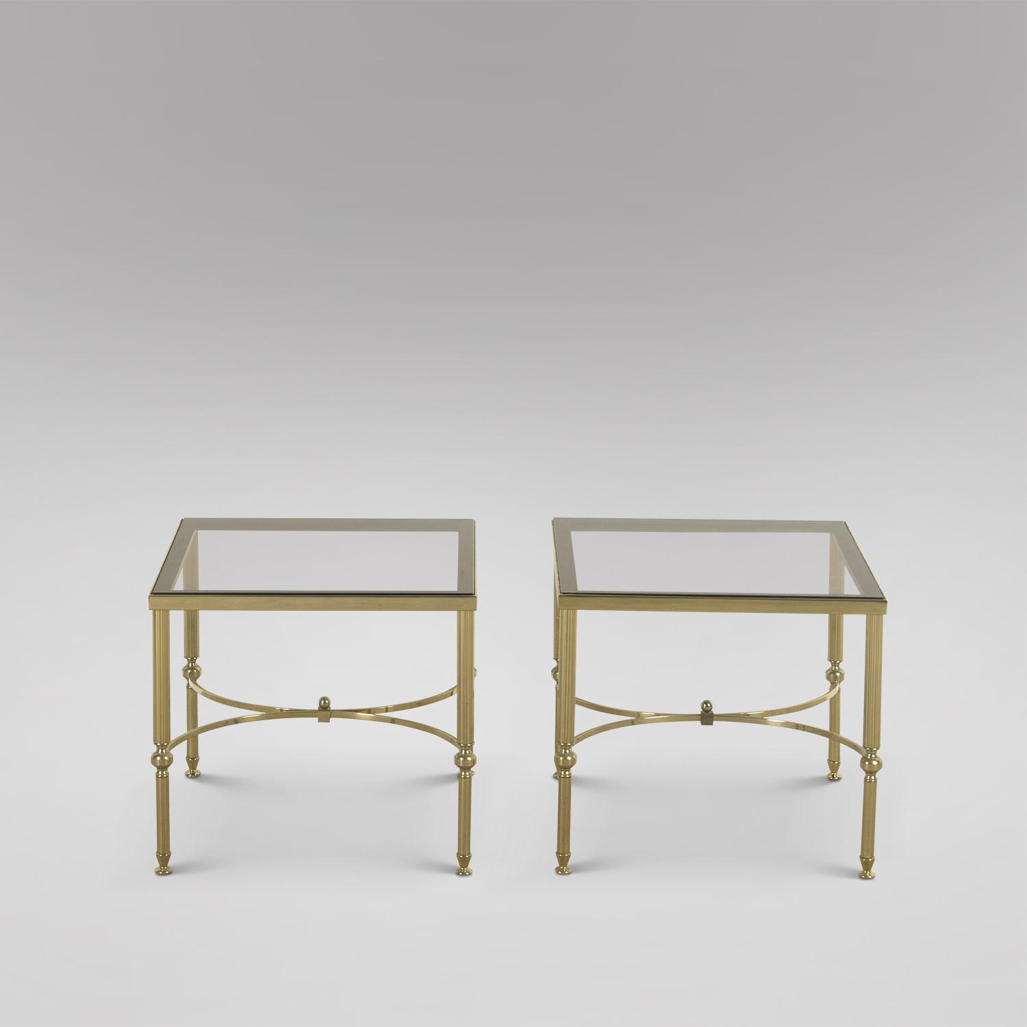 Pair of Lacquered Brass and Smoked Glass Tables (1 of 3)