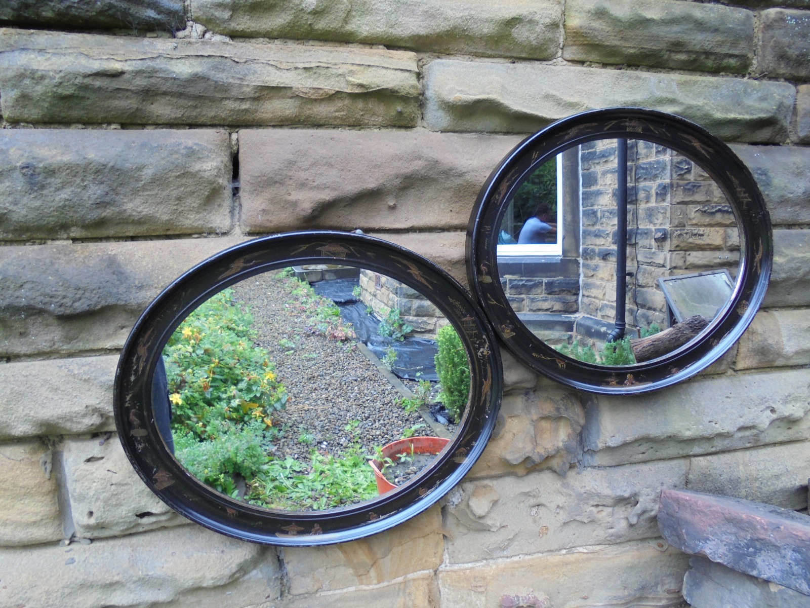 Pair of Lacquered Chinoiserie Decorated Oval Mirrors
