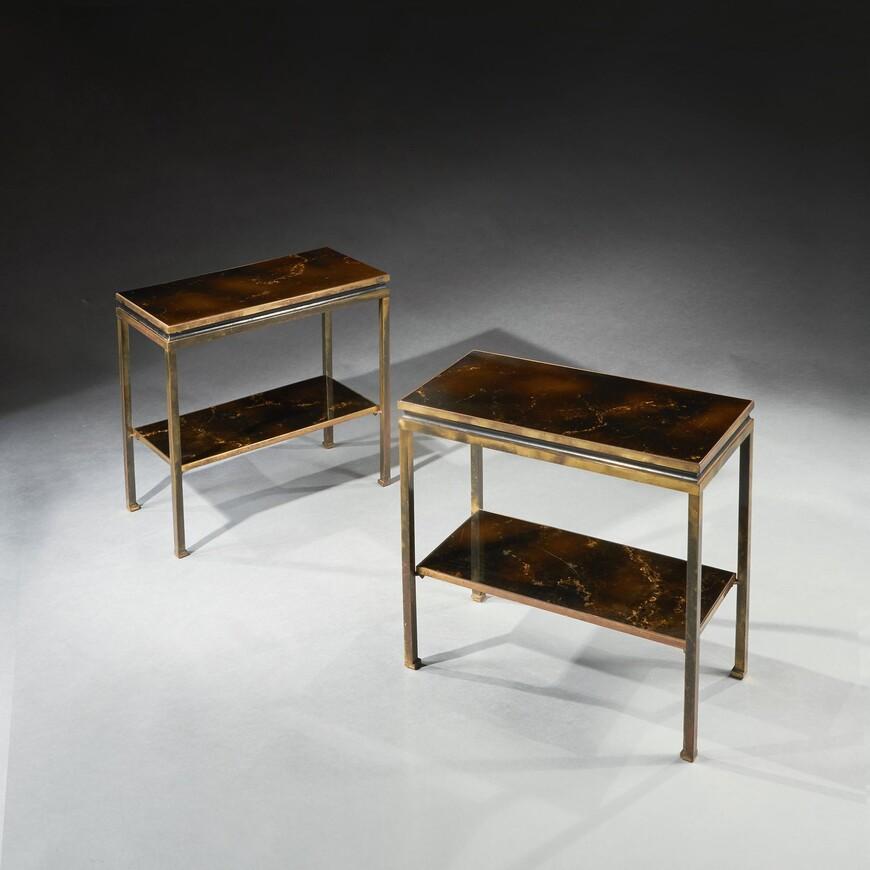Pair of Lacquered Wood & Brass Two Tier Etageres Guy Lefevre for Maison Jansen