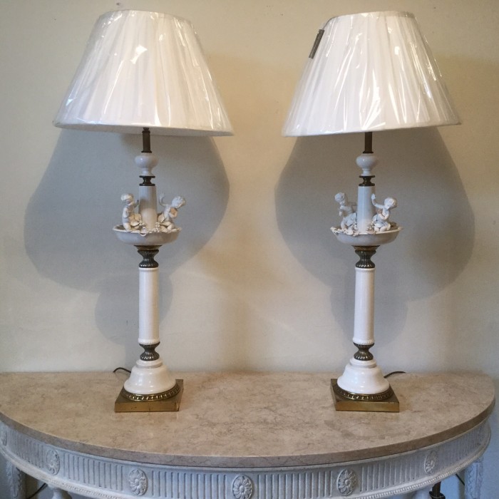 Pair of Lamps with Cherubs in a Bowl (1 of 1)