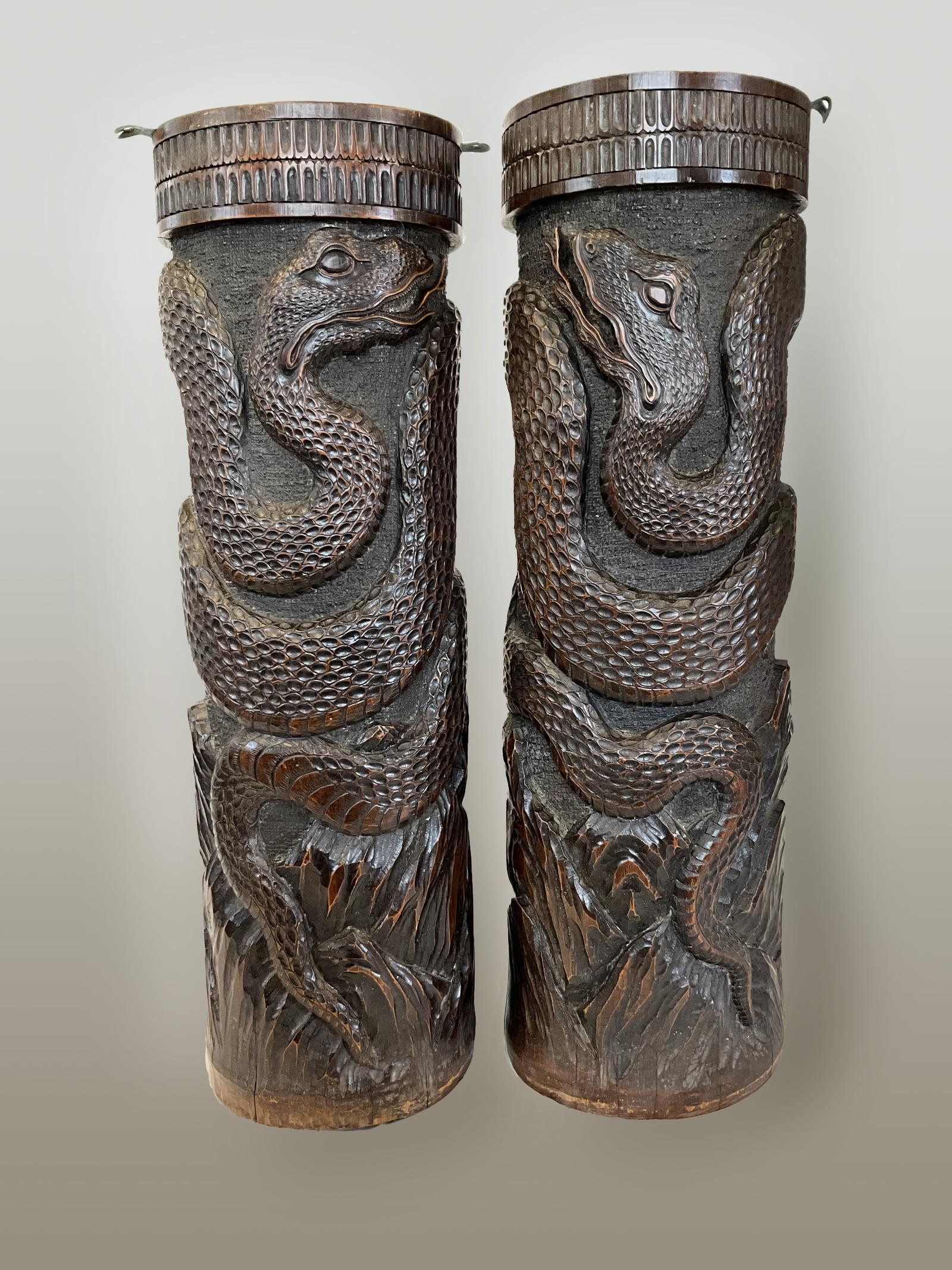 Pair of Large 19th Century Hand Carved Bamboo Brush Pots