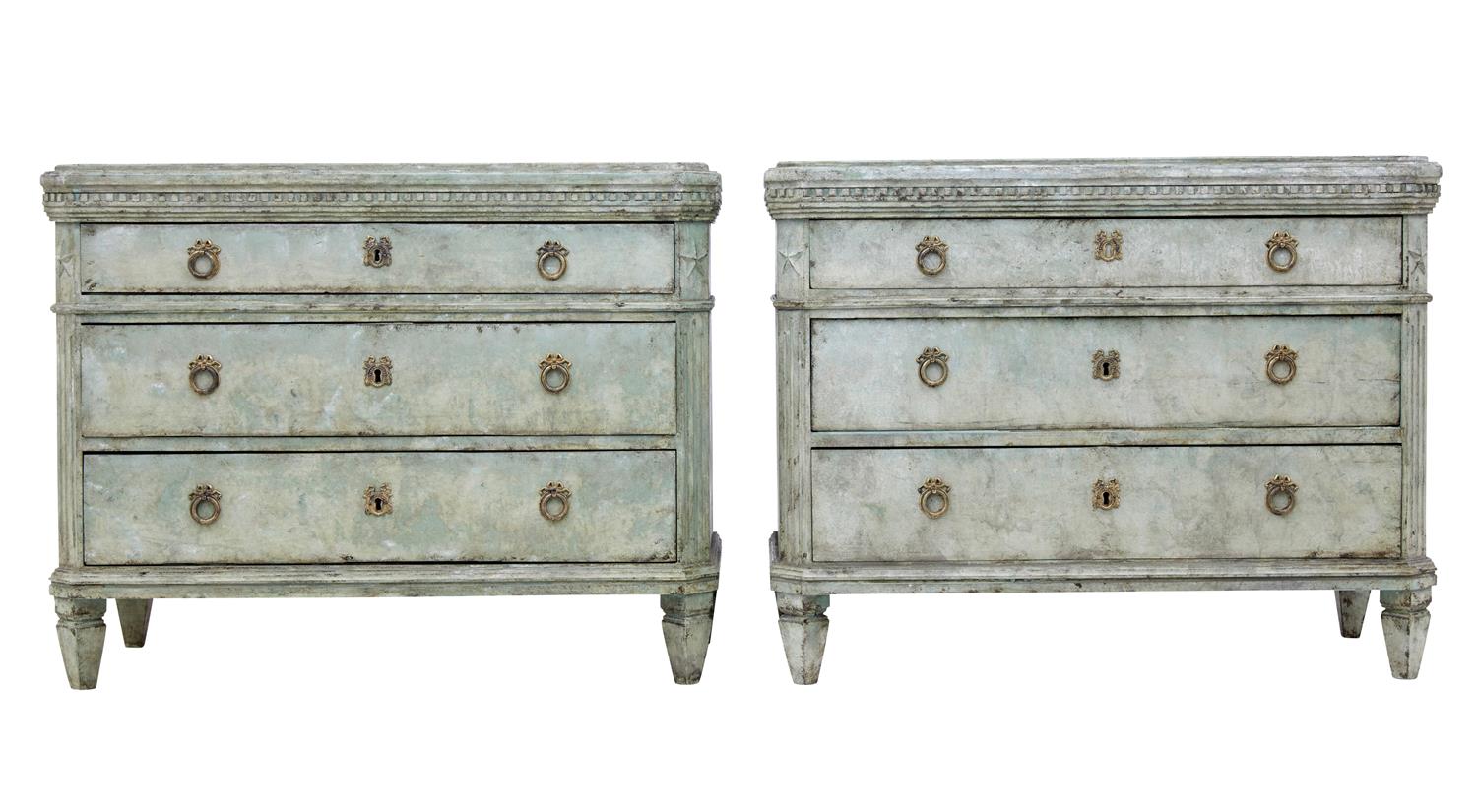 Pair of Large 19th Century Swedish Painted Commodes
