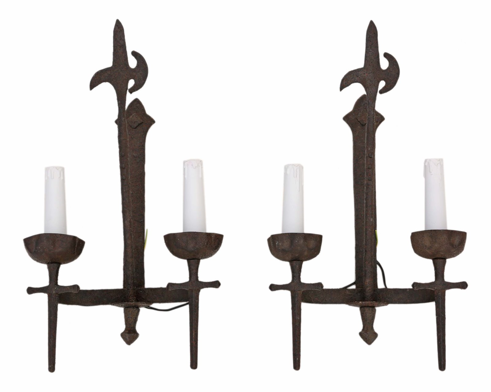 Pair of Large 2 Lamp Wrought Iron Wall Lights
