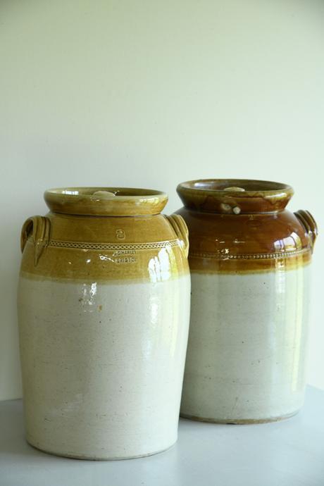 Pair of Large Antique Bristol Stoneware Crock Pots