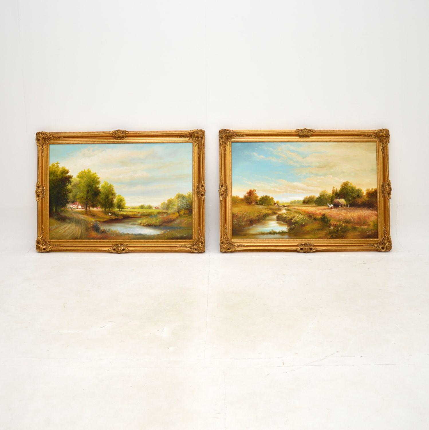 Pair of Large Antique Style Landscape Oil Paintings (1 of 15)